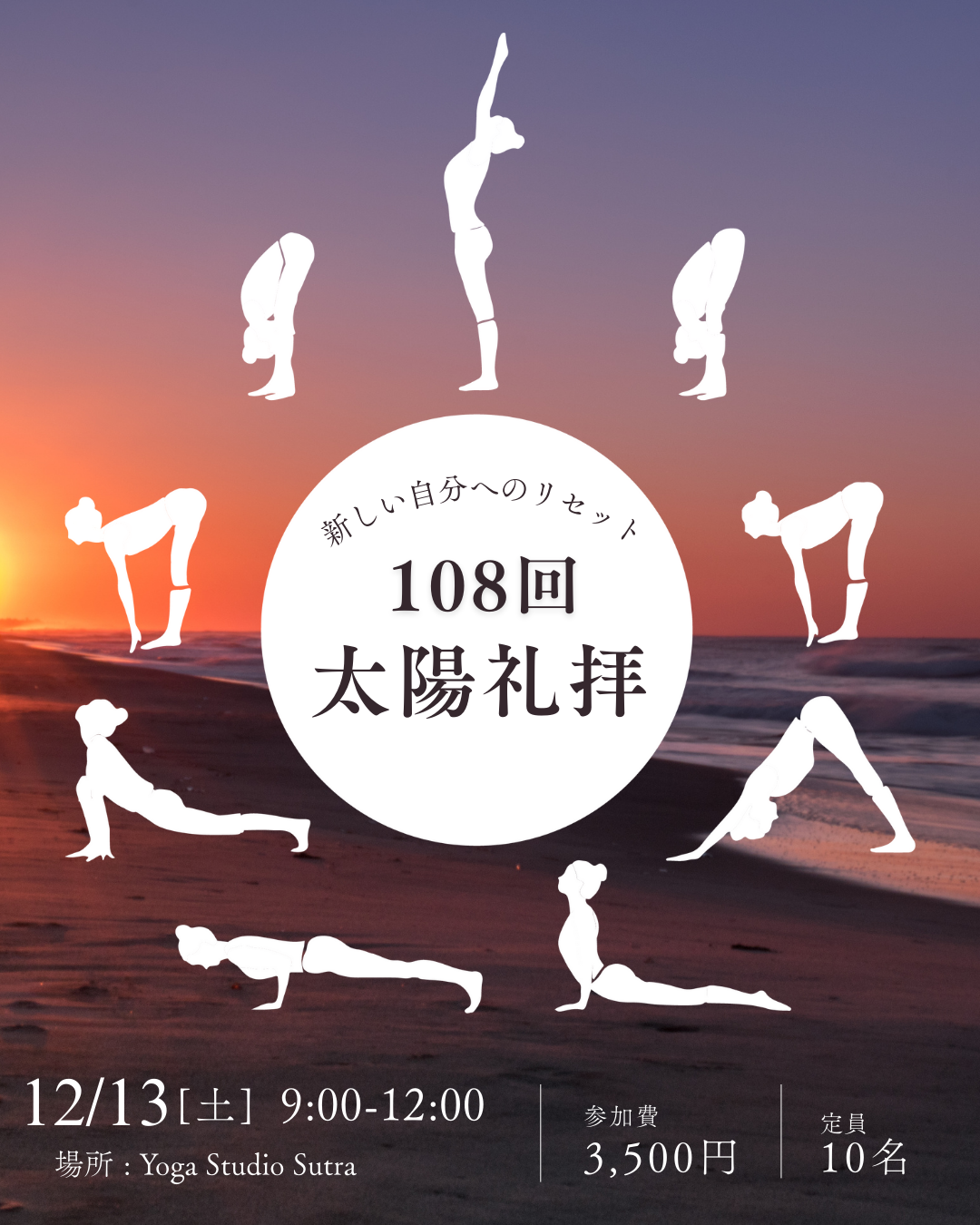 太陽礼拝を108回という回数を行うことは単なる肉体的な運動ではなく、煩悩の浄化、心身のリセット効果があり